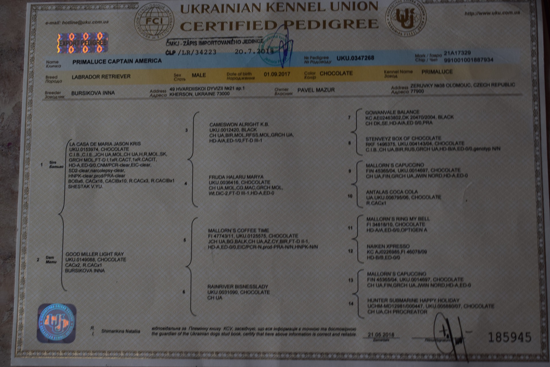 Chovný pes import Ukrajina - Cherson